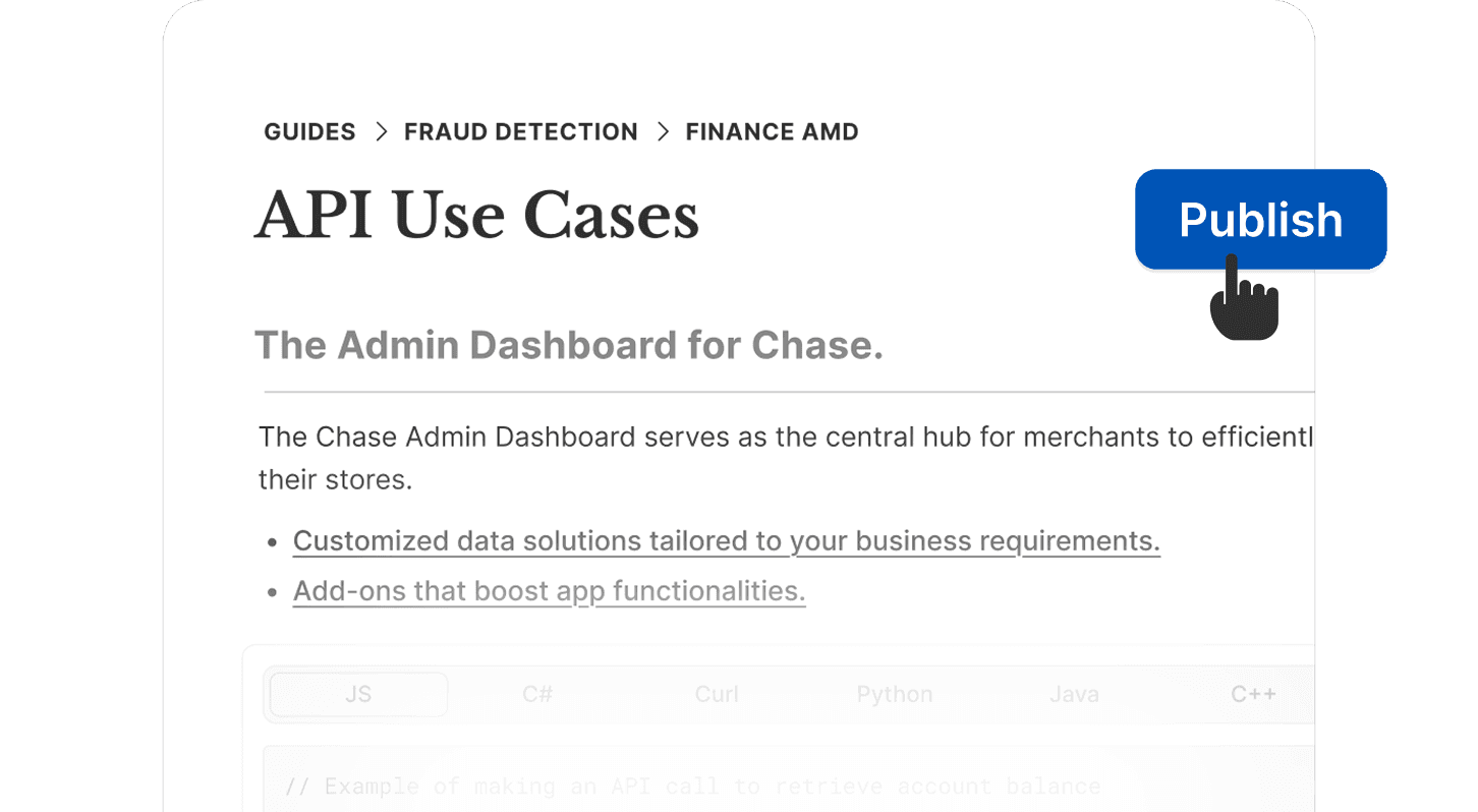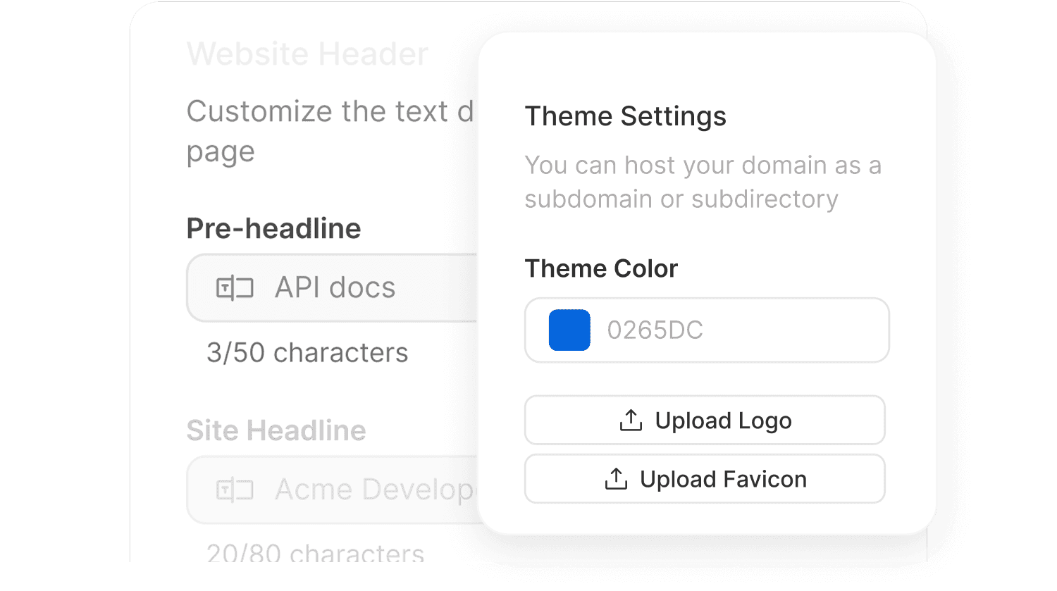 Customize themes, layouts, logos, and domains — so your docs look and feel like a seamless part of your product.
