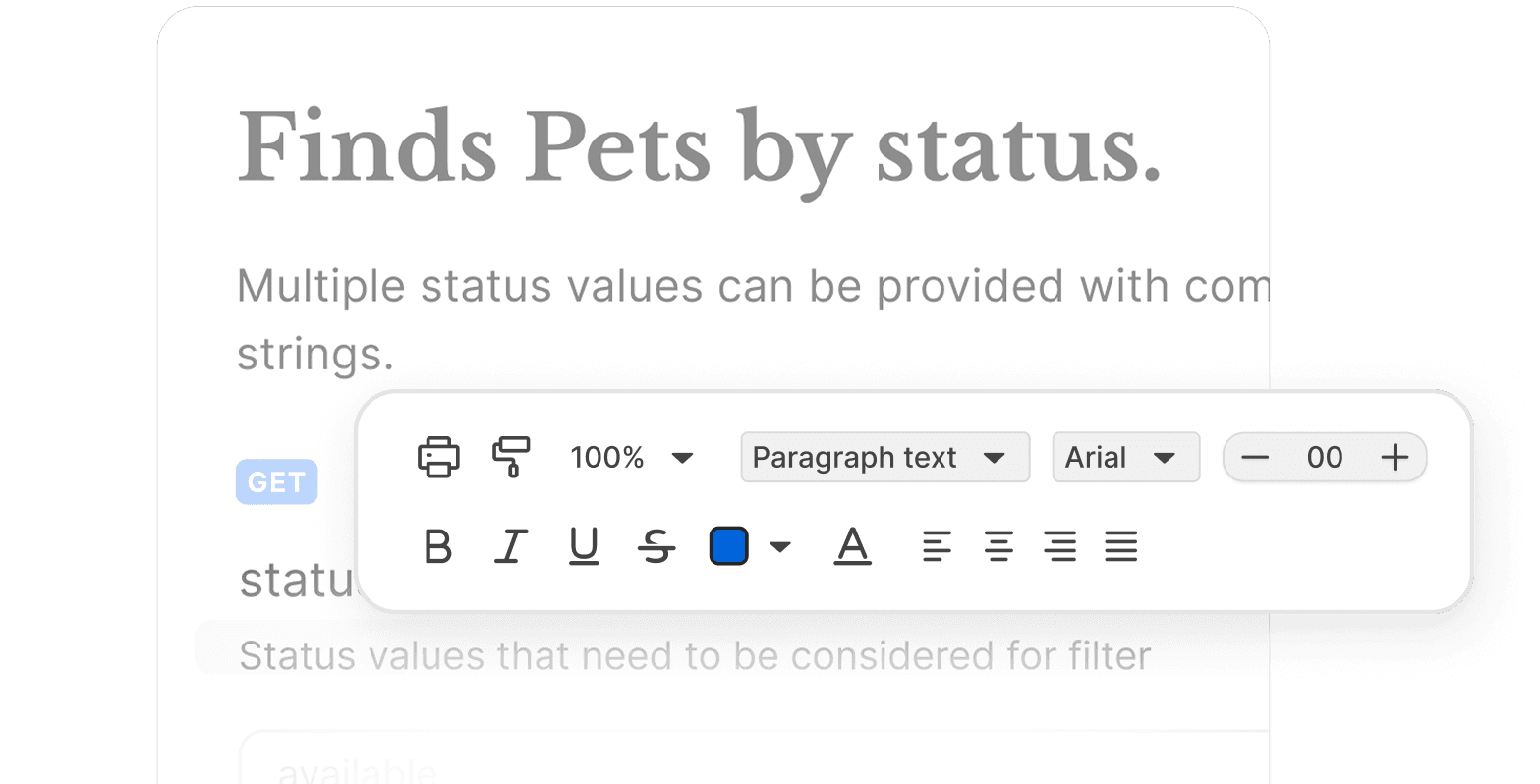Write in a structured editor built for tech writers — with templates, sections, and smart suggestions.