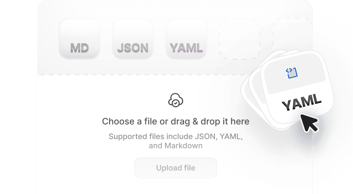 Bring in OpenAPI specs, Markdown files, or sync directly from Git — so you start with what you already have.